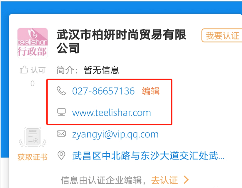 据公开资料显示,柏妍时尚沿袭了缇丽莎尔的官网网站(网址www.teelishar.com)、电话以及公司地址等,可见,缇丽莎尔还是原来的缇丽莎尔,只是多出了一些“毛病”。