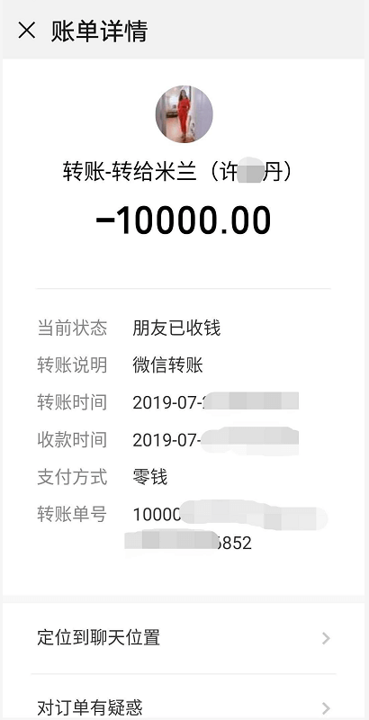 据郭女士回忆道,那天是7月4号。钱转给许某丹之后,联系便多了起来,我把她带回我家介绍给我老公认识,我老公了解后就希望她好好带我做,之后她把我拉进凤凰群,也分享了纹妈妈的映客给我学习,7月13号,她又发消息我,让我进群快抢450元的洗护套餐说优先者还有奖励,我也立马把钱转给了她。