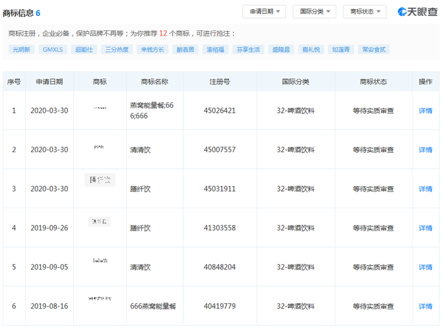 国家企业信用信息公示系统显示,光明新零售有限公司成立于2019年7月1日,法定代表人、经理、执行董事为杨德坤。天眼查显示,股东蒋亚学认缴5100万元,占公司51%股份;李国认购4900万,占公司49%股份。值得注意的是,光明新零售只申请了第32类啤酒饮料的6个商标和2个食品经营许可证。