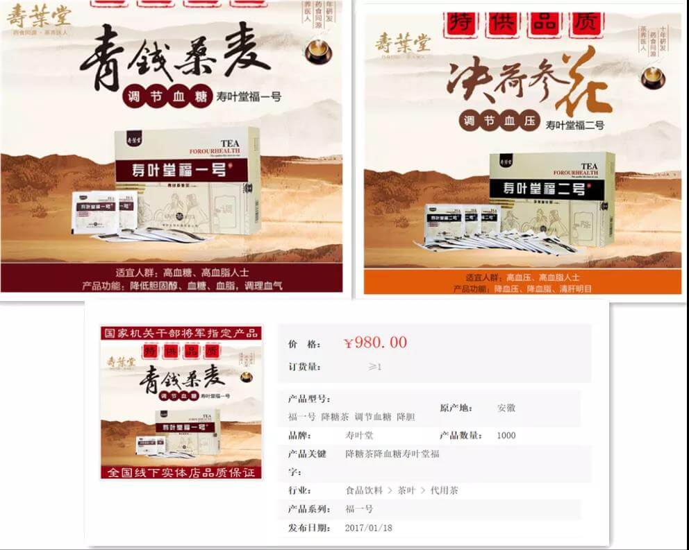据公司官网介绍,上海寿叶生物公司是“国内专业权威的茶疗研发、生产、销售机构 ,与中关村华促会共同组建高血压研究课题;传承传统中医药的伟大思想,绿色天然,养生健疗,降血压、降血糖、促睡眠三项高水平专利成果,真实可靠不忽悠;系列产品进入《全国老干部健康产品采购目录》,是第二届老年节久久敬老会百名国家机关老干部、老将军健康养生论坛指定产品”。
