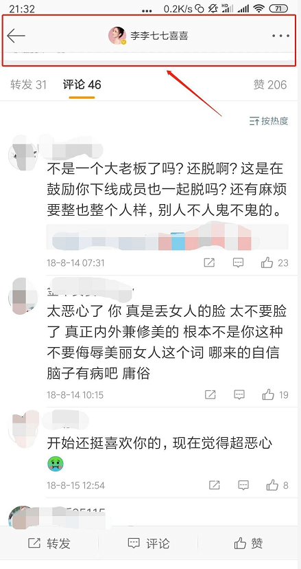 李七喜微博留言,现已删除