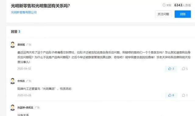 对于光明新零售与光明集团的关系,光明乳业相关负责人表示,光明新零售非光明乳业旗下品牌,与我司及各子(分)公司没有从属或合作关系,我司及各子(分)公司也从未推出此类与光明新零售有关的任何产品。