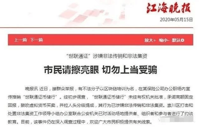 “世联通证”涉嫌传销和非法集资执法部门已经展开调查