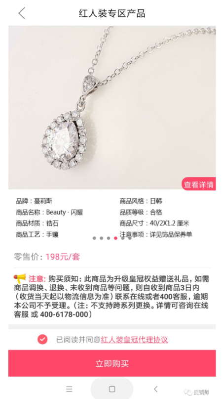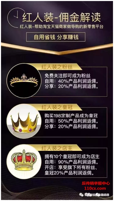 二:皇冠,198元购买私人订制升级为皇冠,自购返商品利润的50%红豆佣金,拿直接分享粉丝和皇冠购物商品利润的20%现金佣金,直接分享粉丝升级皇冠70元现金佣金。