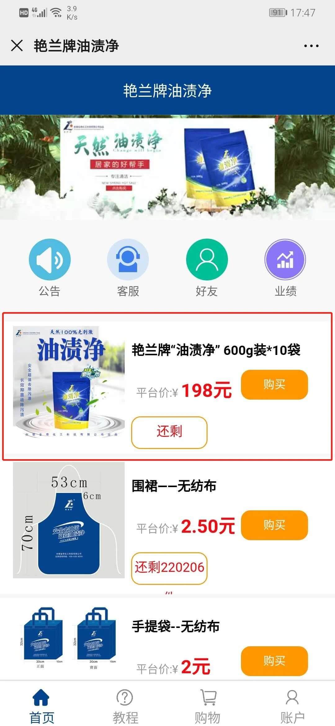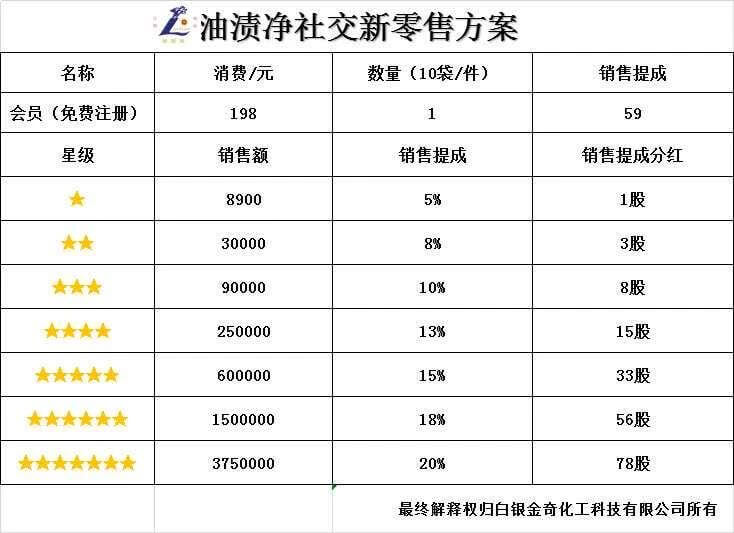 投资198元购买10袋艳兰牌油渍净产品后,升级成为VIP即可获得推广资格。
