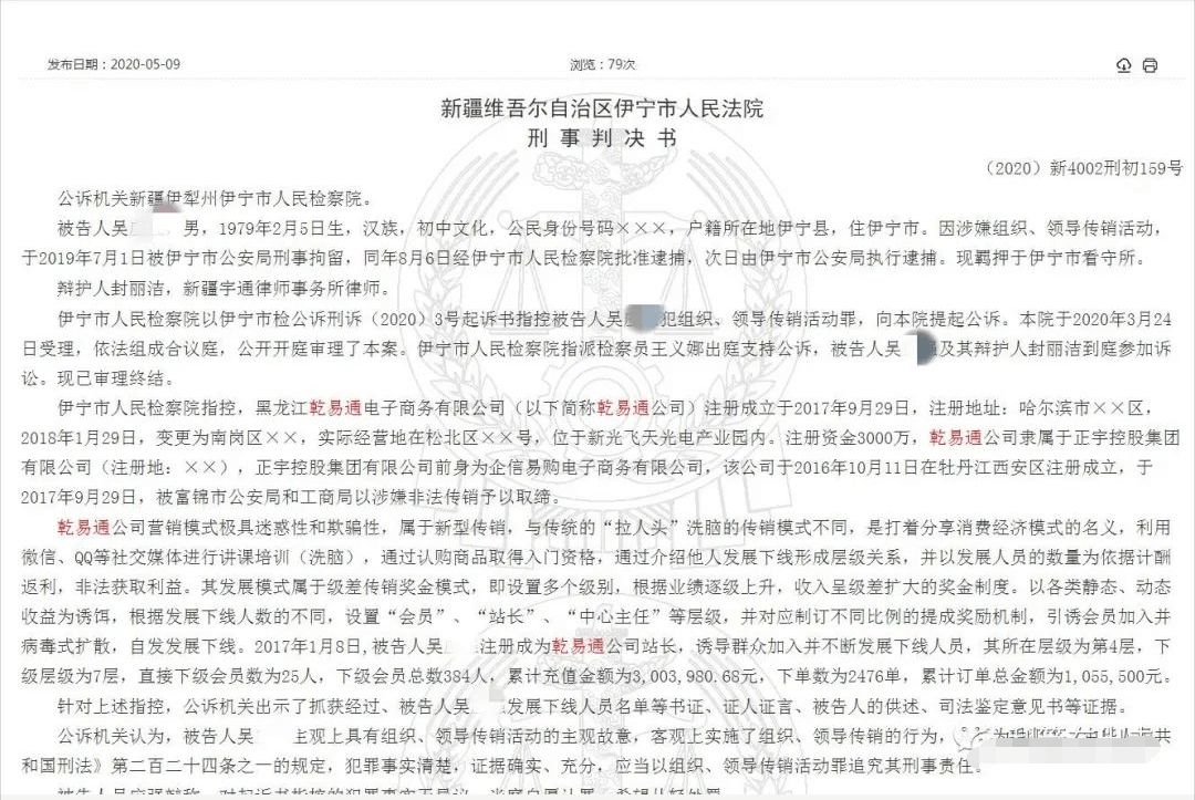 “正宇”乾易通”一站长搞传销,获刑1年2个月,罚金2万!