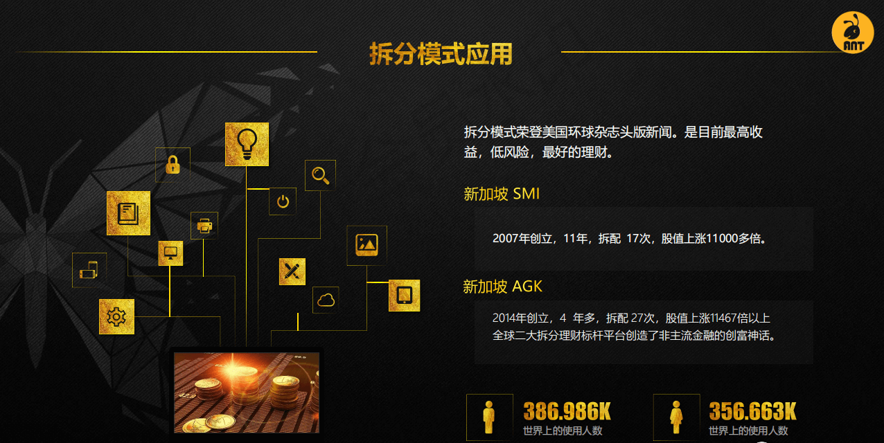 其实无论操盘者们如何美化自己,拆分盘都是建立在“传销”的基础之上,即便是宣称自己是SMI和AGK升级版的金蚂蚁也同样如此。