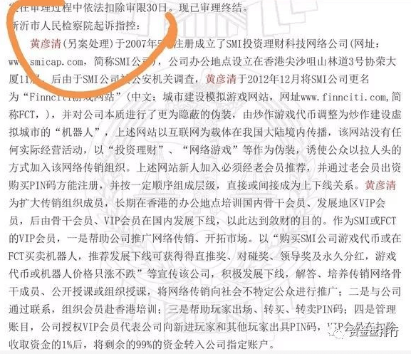 有消息称目前AGK在四川已经立案调查(真实性待验证),其实立案是早晚的,SMI拆分鼻祖黄彦清同样被新沂市人民检检察院起诉指控。