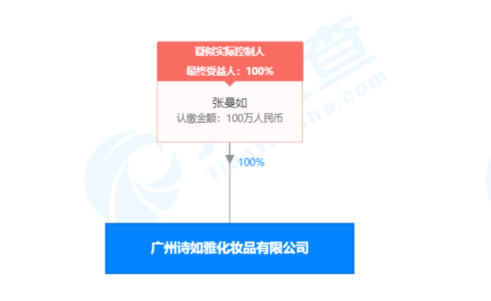 据天眼查显示,广州诗如雅公司成立于2017年6月,注册资本100万元,法定代表人张曼如,持股100%,任执行董事兼总经理。旗下拥有诗如雅、美迪智、三曼商标,主营护肤品行业,而美迪智属诗如雅旗下主要的化妆品品牌,拥有包括面膜、卸妆水、唇膏等多种女性化妆品品类。