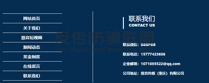 除了借名宣传惨遭打脸,反传防骗联盟还注意到慈音短视频的官网提供的联系方式也是漏洞百出,不仅官网看上去给人一种粗糙的既视感,所谓的“最大的网红直播基地”的短视频公司的企业邮箱域名居然是用的第三方。
