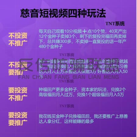 玩法四:要投资,要推广,花钱买金种子总的福田后,我还要推广上慈善达人拿分红,这样能赚的最多。