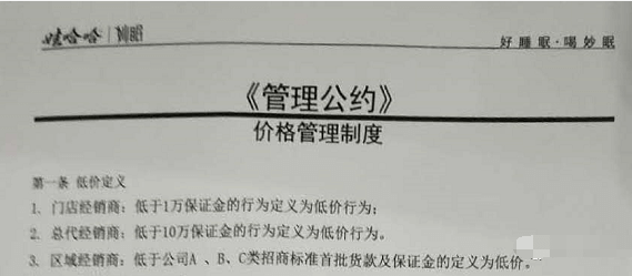 缴纳费用获得加入资格,团队计酬,发展人员牟取暴利,哇哈哈妙眠代理模式以涉嫌传销。