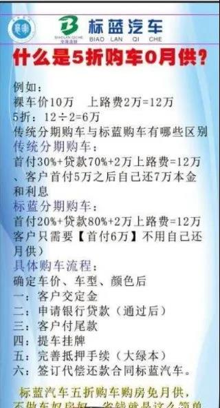 据调查,河北标蓝汽车销售有限公司推出的半价购车模式为消费者支付车价和提车费用的一半后,标蓝汽车负责支付后期月供。例如新车裸车10万,提车费用2万,那么传统购车首付3万加7万贷款外加2万提车费用,总共需要支付5万元并每月还月供;采用标蓝汽车半价购车模式则是支付6万元,但后期月供不需要消费者承担。