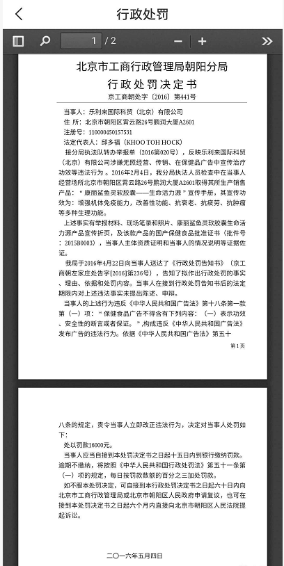 经调查后判定:乐利来国际构成发布广告的违法行为,处以罚款1.6万元。