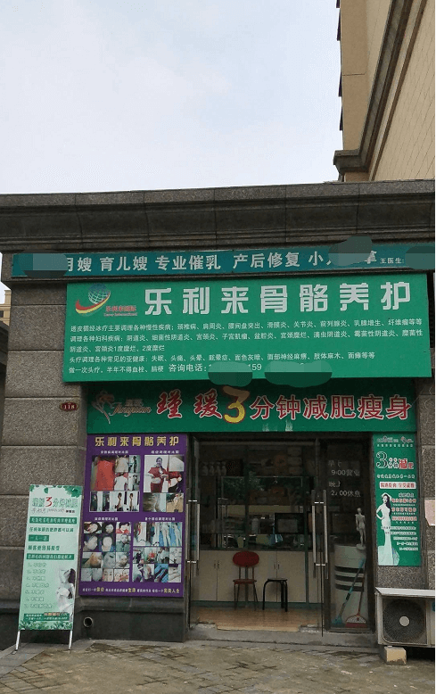 这是一家位于安徽某地的一家乐利来骨骼养护体验店。在该店的招牌上赫然写道: