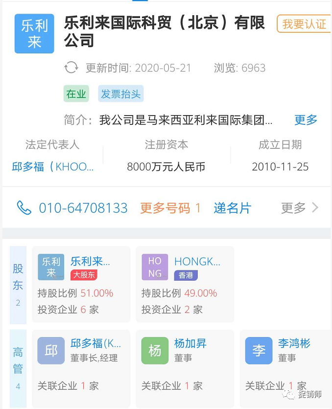 乐利来国际科贸(北京)有限公司(以下简称乐利来国际)成立于2010年11月,号称是一家具有强烈社会责任感并积极推广慈善营销的直销企业。但是根据商务部直销行业管理网站查询,乐利来并没有获得直销牌照,曾经号称2014年上市,但至今仍未上市。