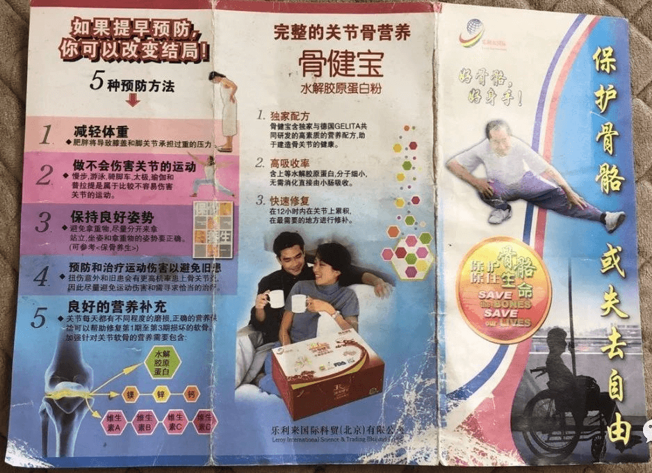 视频中出现的这款名为骨健宝水解胶原蛋白粉的产品为乐利来国际的产品。据这名讲解者称:只需使用三到六个月即可解决所有的骨骼问题。