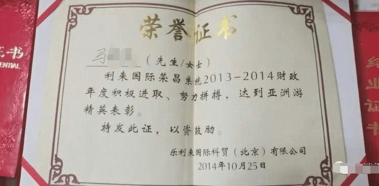首先这位马女士是乐利来国际荣昌系统的精英成员,曾获亚洲游表彰。