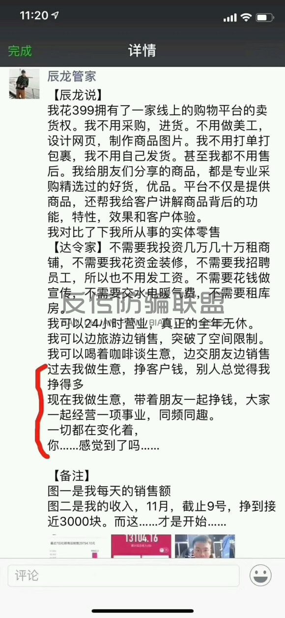 究竟是什么样的项目能月入40万?反传防骗联盟经过调查发现这家表面上以分享商品获得提成的“达令家”社交电商平台,实质上却是以发展新店主为名拉发展新人或团队,且奖励层层递进,缴纳399元购买指定商品成为店主,上家最高可获得230元的奖励。