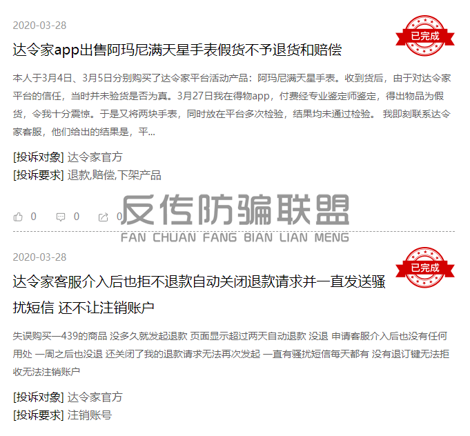 除了上述用户在投诉平台反映的产品质量问题之外,在其他的几个平台,反传防骗联盟相继看到了不少达令家的代理纷纷对其产生了质疑: