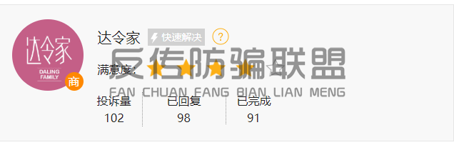 截止到目前,在该投诉平台上达令家共接到了102起投诉。