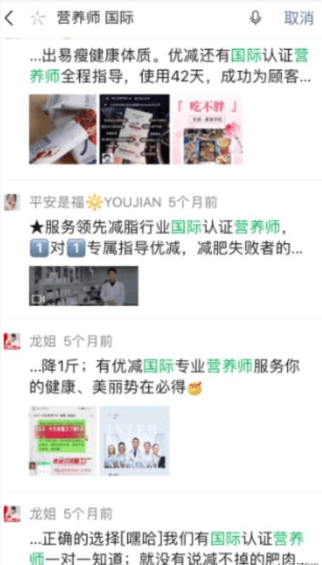 本人系优减公司一名营养师,搜集了从营养师的招募、培训到上岗以及工资发放的证据,实情如下:公司通过各个团队长宣传营养师招募事宜,从代理中,以及代理身边的人员中招募条件合适的,经过千聊直播网课培训大致工作方式和基本的营养知识,以固化的方法套公式为客户提供非定制服务。
