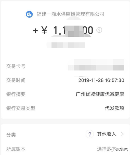 2019年11月以后工资通过福建一滴水供应链管理有限公司汇入,银行摘要为广州优减健康优减健康,交易类型为代发款项