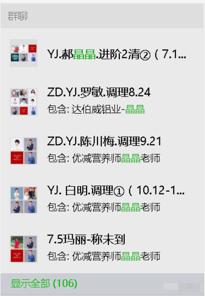 群里依次为:代理---客户---营养师客服1---营养师主管---营养师---营养师客服2---客户朋友或代理朋友或者旁观者(潜在客户)
