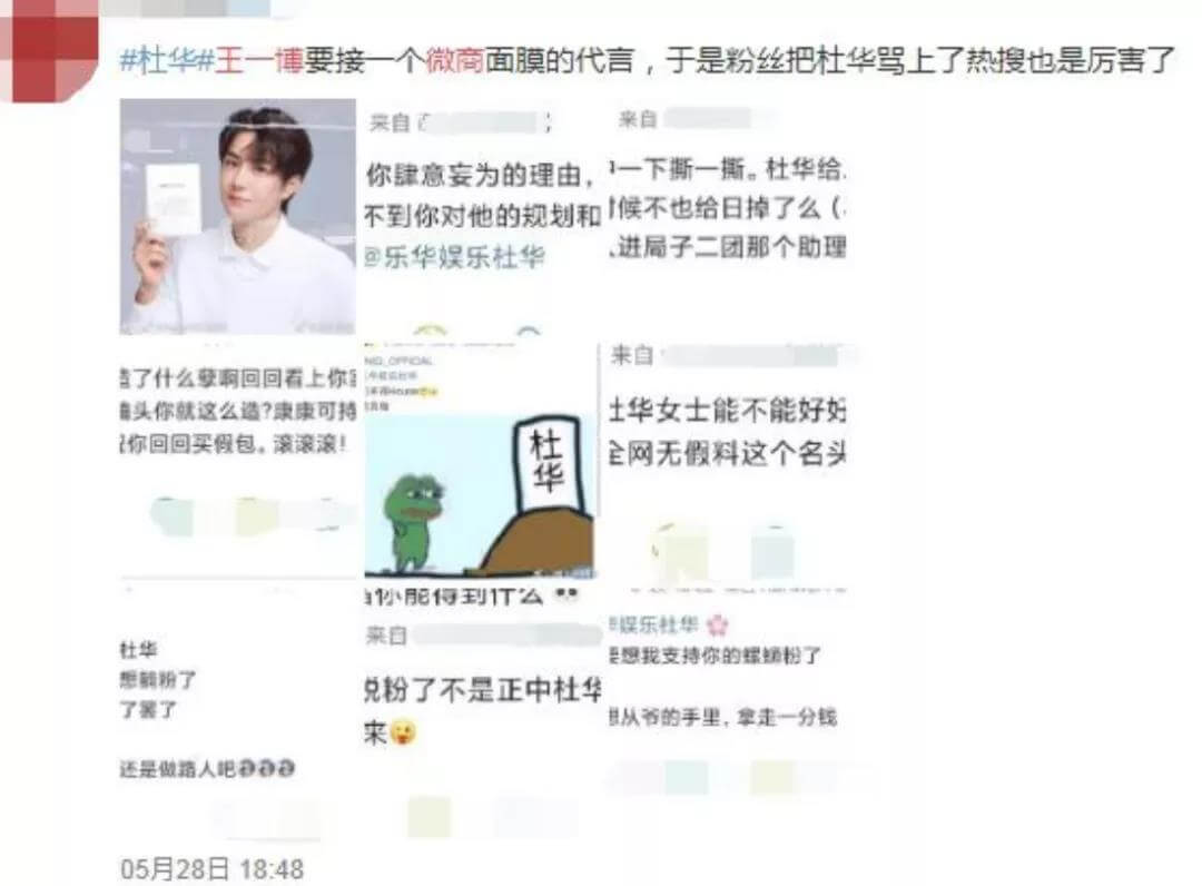 5月28日,有爆料王一博接了一个微商面膜的代言且还有宣传照,爆料一出,不少王一博粉丝就把乐华娱乐的当家人怼上热搜。而王一博的这个广告出来之后,不少真爱粉也纷纷脱粉,有些脱粉后形同路人,但是也有不少的粉丝脱粉之后回踩。