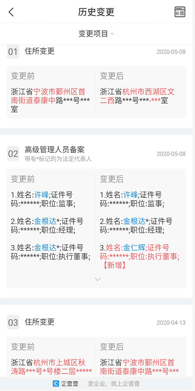 在4月13日从杭州上城区变更地址到浙江宁波而在搬到宁波一个星期就因失联被列入经营异常名录,5月8日其从宁波搬到杭州西湖区,结果在半个月之后又被列入经营异常名录。一家连一个固定办公地址都没有的项目,又能维持多久。就和当年的趣步一样,湖南立案就搬到重庆去。