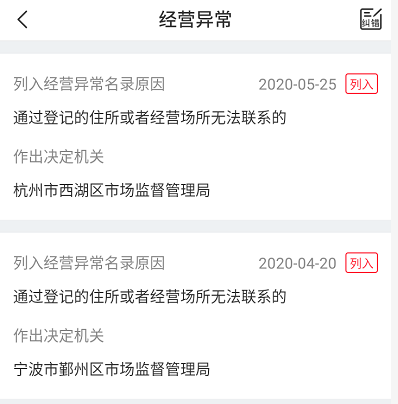 在列入经营异常名录中,不光近日被列入,其4月20日也被列入了一次。而在其历史变更记录之中。