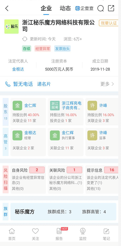 而小编通过企查查查询到浙江秘乐魔方网络科技有限公司已经被列入经营异常名录。