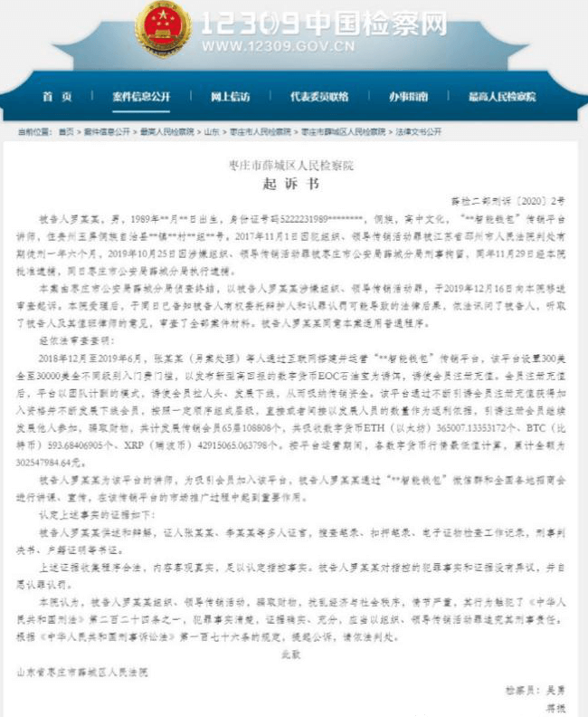 近日,山东省枣庄市薛城区人民检察院对外披露了一起特大网络传销案起诉书。