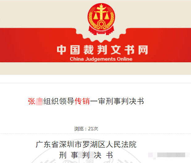 6月16,反传防骗热线获悉,深圳市罗湖区人民法院审理一起网络传销案,公司创始人张某因组织、领导传销活动罪,判处有期徒刑四年六个月,并处罚金人民币三十万元。
