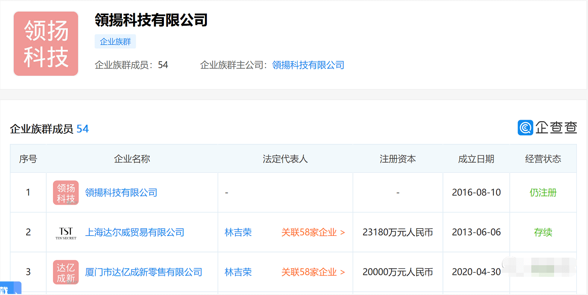 此外,黄傲天和杨志强控股领扬科技已经形成企业族群,企业规模已经达到54家之多。清扬君猜测“领扬科技”字号中的“扬”很有可能是林瑞阳名字中“阳”的谐音,而且领扬科技的实控人黄傲天和杨志强很有可能是为林瑞阳、张庭夫妇或其他股东代持股权的。
