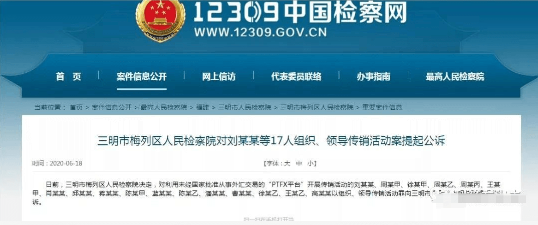 2020年1月28日,福建省三明市公安局梅列分局发布通报称,近期,在上级公安机关的统一指挥下,三明市公安局梅列分局成功侦破“PTFX普顿"外汇交易平台涉嫌组织、领导传销活动案。