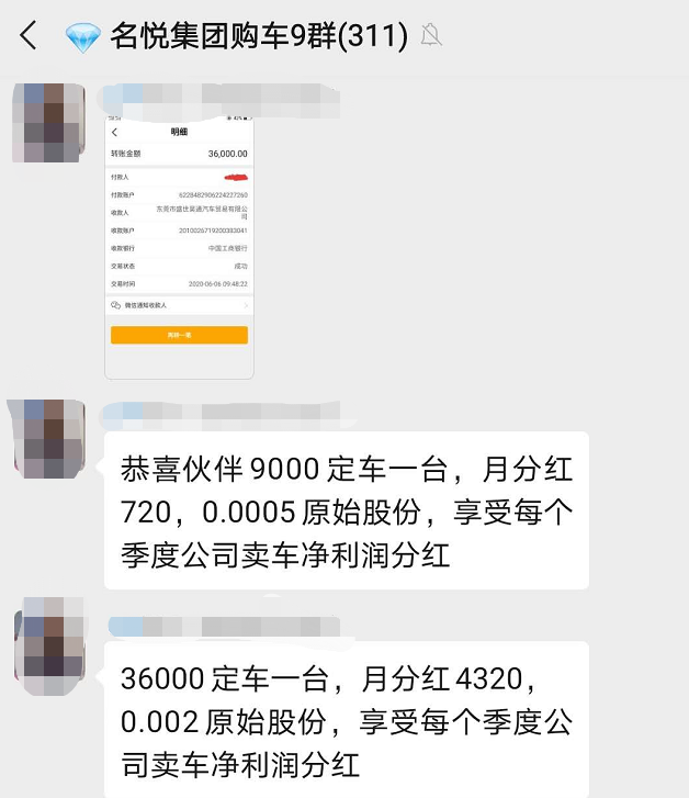 广东名悦汽车集团有限公司以高额收益为噱头,面向不定项公众吸纳投资,且未获得任何主管部门批准,已经涉嫌变种非法集资,同时,根据已经获得视频资料显示,董车长模式涉嫌传销。
