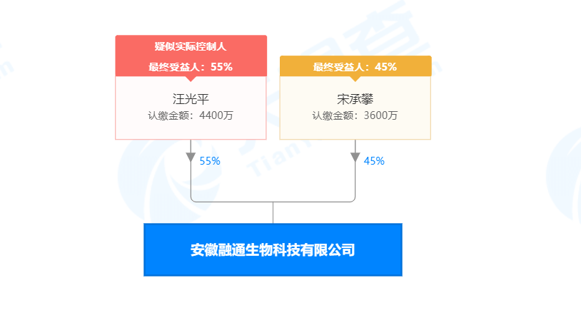 天眼查显示,安徽融通生物科技有限公司成立于2015年7月9日,注册资本8000万元,实缴0,法定代表人是汪光平。