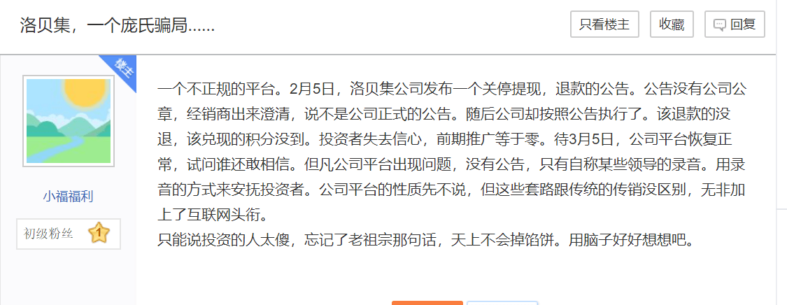 中新观察注意到,在“洛贝集”贴吧有众多会员纷纷留言咨询能否将投资款退回来,也有部分会员恍然大悟。那么,“洛贝集”涉嫌传销被查,其他会员投资款能要回来吗?