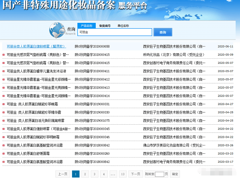 可丽金是西安巨子旗下的品牌,据了解,可丽金品牌,以类人胶原蛋白为主要生产原料,类人胶原蛋白是西安巨子研发的并注册专利,可丽金的各类化妆品也是备案过的,备案均为非特殊用途化妆品,产品并无问题。