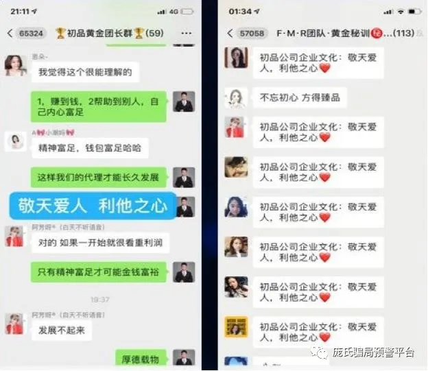 为了控制会员思想,湖南初品公司安排专业的讲师,通过核心群、秘训群的方式,给高级别的团队进行培训,传授如何管理微信群和吸粉拓客的秘决。