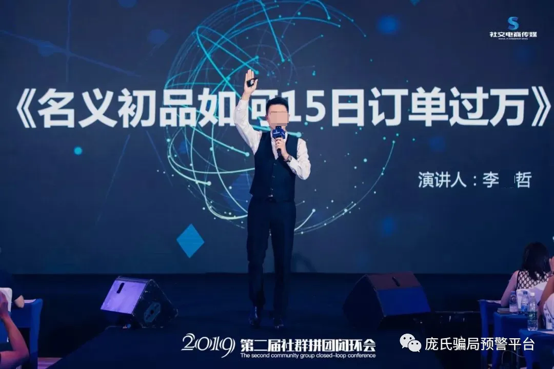 除此以外,湖南初品公司还通过参加“2019第二届社群拼团闭环会”的方式,蹭名人的热度演讲“15天,如何做到日订单过万 ”、“帮助一百万家品牌省钱,解决10万人的创业问题”等内容,极力标榜公司实力,以此骗取消费者信任。
