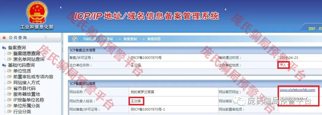 经查,“币视界”网站域名的注册时间是2019年4月23日,主办单位名称是王某铎,主办单位性质为个人,备案/许可证号为陕ICP备19007870号,网站名称是“我的紫罗兰画展”。
