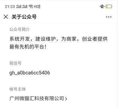 而小编 通过调查后发现 ,广州微猫汇科技有限公司曾经注册有公众号:微猫汇。
