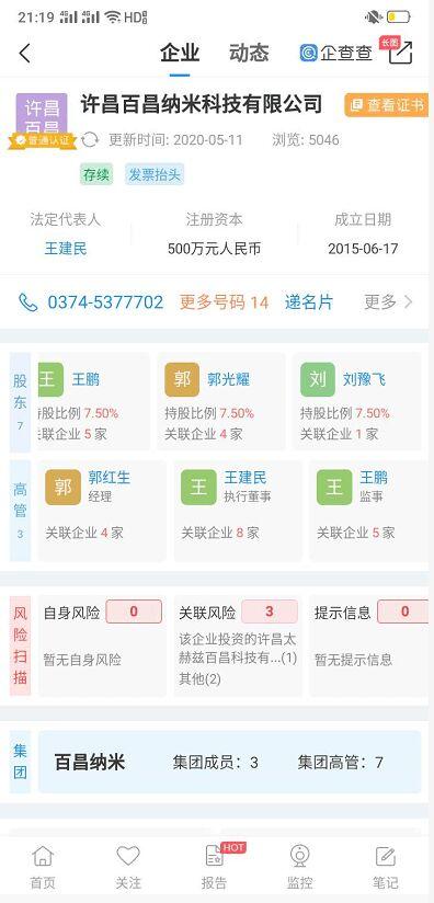 通过调查后发现其法人郭光耀跟已经被屡次遭曝光的许昌太赫兹百昌科技有限公司存在这千丝万缕的关系。根据企查查显示郭光耀为许昌百昌纳米科技有限公司的股东。
