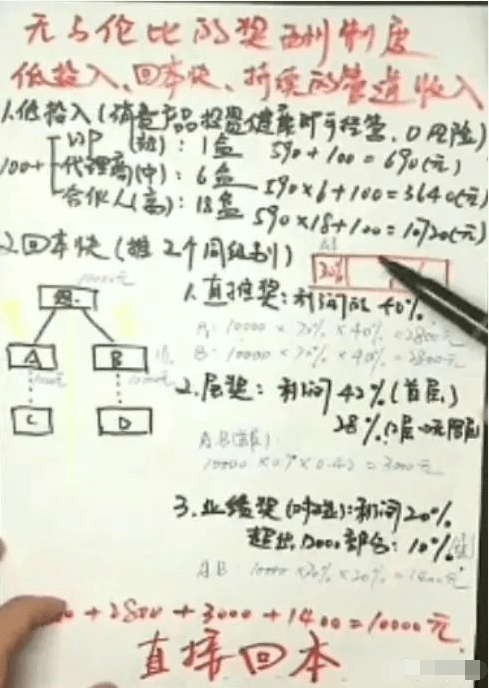 另一位经销商在视频中讲解制度称,北方基因是一份低投入、回本快的事业,推荐2个代理能回本,业绩累积,永不清零,并可享持续的管道收入,一天推荐两个高级代理,能日入过万。例如:业绩奖(对碰)利润的20%,上不封顶,只要你能力强,团队够大,可以拿“无限代奖金”;层碰奖首层拿利润的42%,2层以上到无限层能拿利润的28%,市场可以无限延伸。