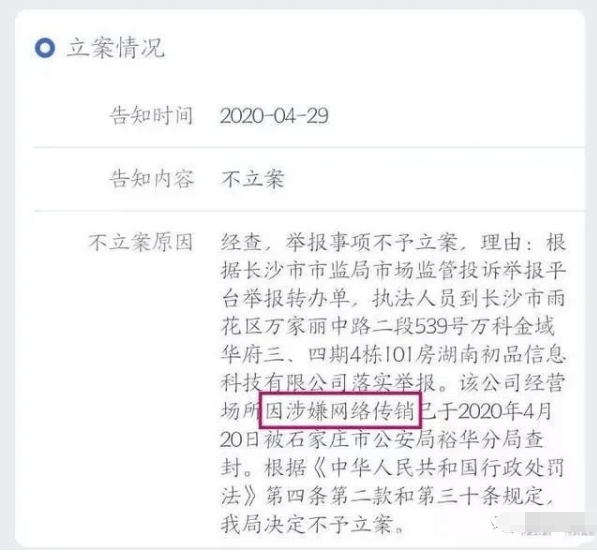 在此期间,还注册多个营业执照,包括湖南初品公司、杭州初品信息科技有限公司、长沙美优品信息科技有限公司、长沙名品好物信息科技有限公司、江苏初品信息科技有限公司、长沙臻品科技有限公司等多家公司,并交换使用,多次变换收款渠道。