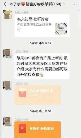 为了提升人气,平台还会指导团长会员每天在群里发带有身份识别信息二维码和商品信息的1元的小红包无数个,点开的人就自动成为了下线。消费者成为团长才可以挣下线的佣金,才能分享赚钱,成为团长的条件就是组建一个百人微信群,通过消费朋友圈的人脉,来达到用户数量的急速裂变扩增。
