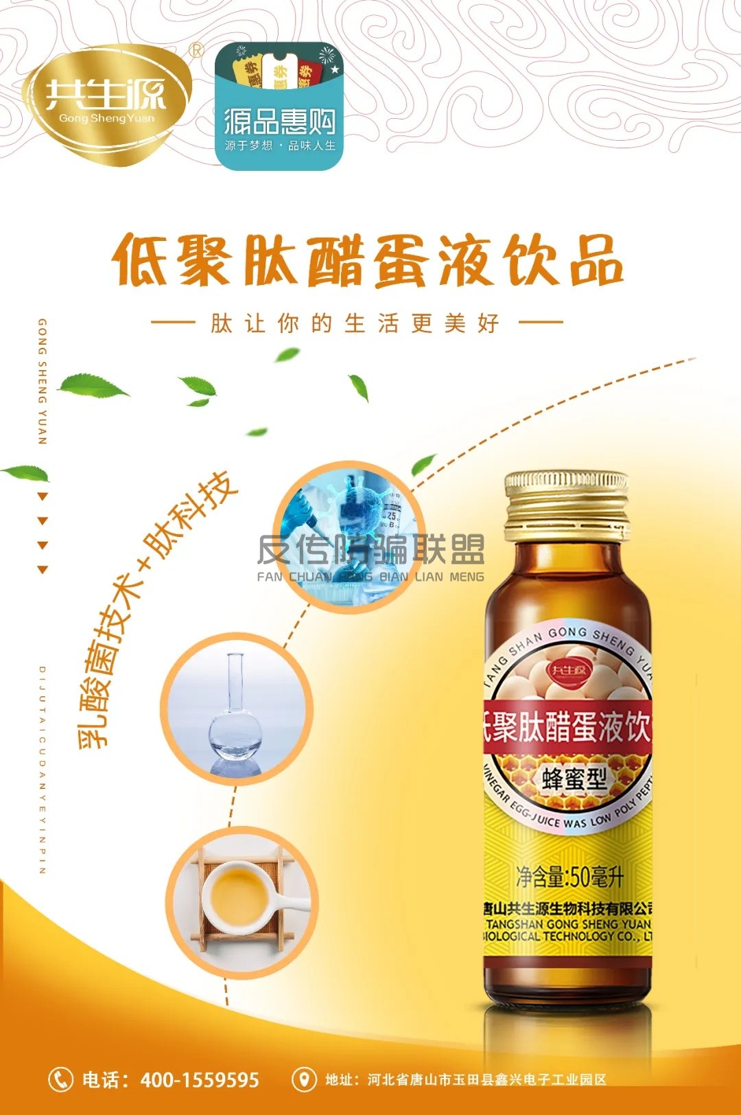 近日,有消费者向反传防骗联盟反映一款名为“共生源低聚肽醋蛋液”的产品风靡朋友圈,在代理商口中,这款醋蛋液有着“神奇”的功效,甚至能够“包治百病”。
