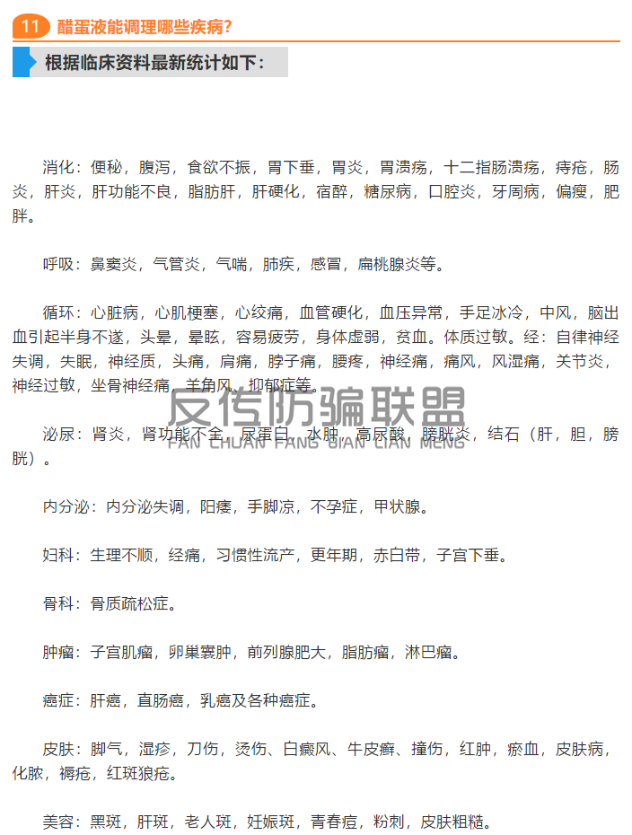 该篇软文称“共生源醋蛋液找到了百病的根源所在,从根本上调理疾病”,醋蛋液不仅对于消化系统、呼吸系统、循环系统、泌尿系统、内分泌系统等有奇效,甚至对于女性妇科、骨质疏松症、各类肿瘤、癌症、皮肤病等都具有调理作用,除此之外,这款“神奇”的醋蛋液饮品还能够美容养颜。